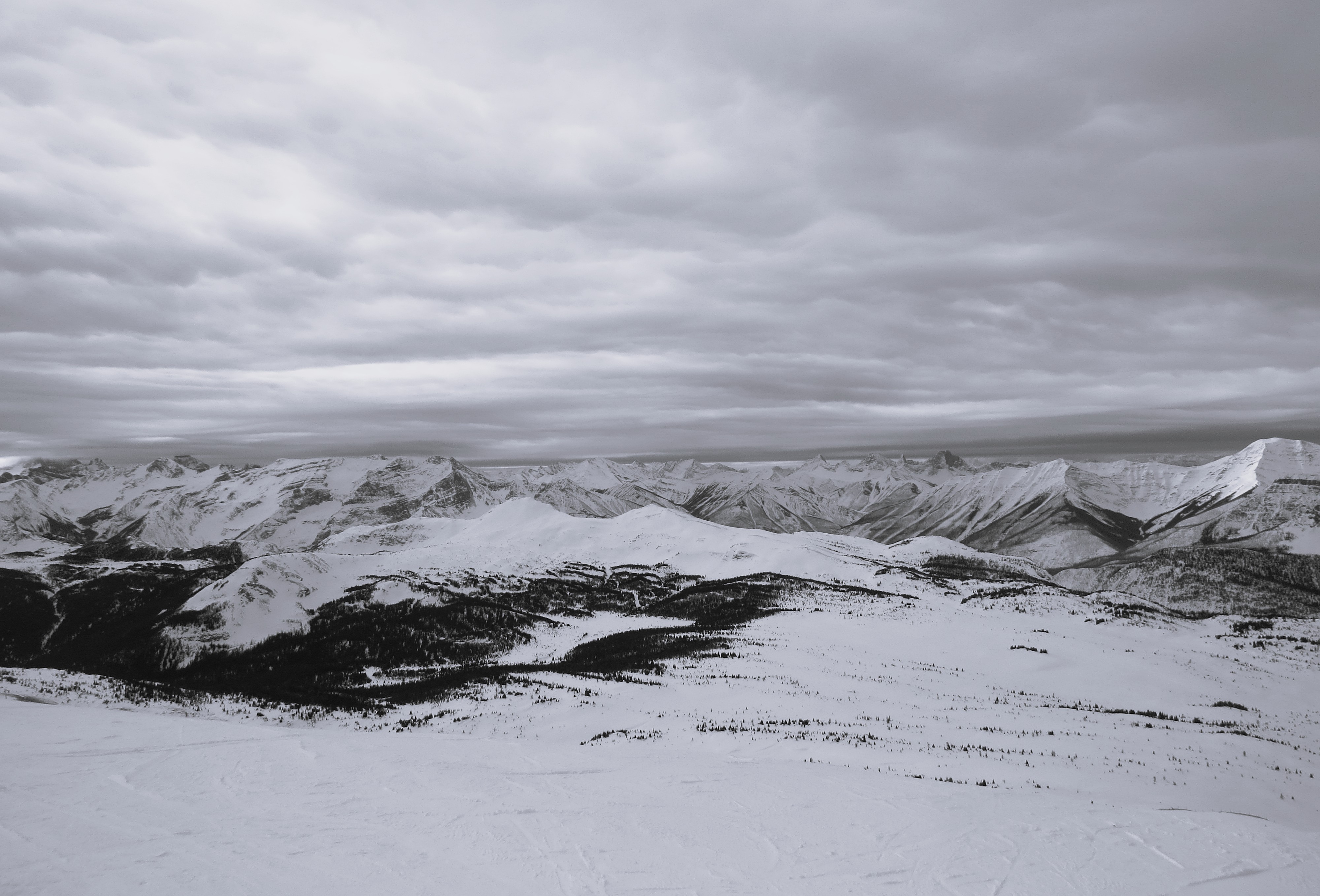 Jadę z przyjacielem, który ma się spotkać w Banff ze swoim przyjacielem z lat młodości jeszcze warszawskiej. Kiedyś był w Banff ale nie zna go aż tak dobrze, jak ja. Łazimy więc długimi kilometrami wokół zamarzniętej Bow River, wokół starego, monumentalnego Fairmont Hotel, gdzie kiedyś przed laty spotkałem i rozmawiałem z wielką gwiazdą Hollywood Jamesem Stewartem[i]. Idziemy do Banff School of Arts, gdzie kiedyś chodziłem na koncerty i gdzie bliski znajomy flecista Krzysztof Kaczka miał stypendium, gdzie kiedyś ja miałem dostać też swoje na pisanie – musiałem zrezygnować, bo inne wydarzenia w życiu nie pozwoliły na takie sabbatical. Następnego dnia jedziemy do fantastycznego, mojego ulubionego w dawnych czasach, raju narciarskiego w Sunshine Village. Od czasu mojego wypadku samochodowego blisko rok temu moja lewa noga nie pracuje jak trzeba. W zasadzie spodziewałem się, że narty, zwłaszcza wysokogórskie, już nie są dla mnie. Aliści … nie ma lasu bez liści. Więc założyłem deski i … wio! Skłamałbym pisząc, że szusowałem, jakbym mógł rok temu. Ale radość jazdy mi zrobiły, mimo, ze chwilami bolesne i trudne. A potem kilka kilometrów do bazy już nie kolejka linową a droga w dół. Pierwszy i jedyny upadek miałem już przy parkingu, gdy się zatrzymałem by już odpiąć narty, źle chyba stanąłem i poleciałem na plecy, LOL. Następnego dnia pojechaliśmy nad Lake Louise i zamarzniętym na amen jeziorze złaziliśmy kilka dobrych kilometrów. Spoglądałem z ciepłym rozrzewnieniem na szczyty Mitry i Abberdeen, na lodowiec Victorii przy Lake Louise, hen po prawej ku Lake Agnes i przełęczy, którą kiedyś przechodziłem do Lake O’Hara i starego schroniska, gdzie przebywał kiedyś Jackson, jeden z malarzy słynnej Grupy Siedmiu; na moją ukochaną Mount Temple z bogami mieszkającymi na jej szczycie. Tym razem chyba naprawdę ostatni raz. Wiem, tyle już razy mówiłem, że gdzieś jestem ostatni raz … i nagle do tych miejsc wracałem. Ale tam już chyba faktycznie więcej nie pojadę. Ale jestem szczęśliwy, że pojechałem teraz. I w kompani serdecznej, dobrej.