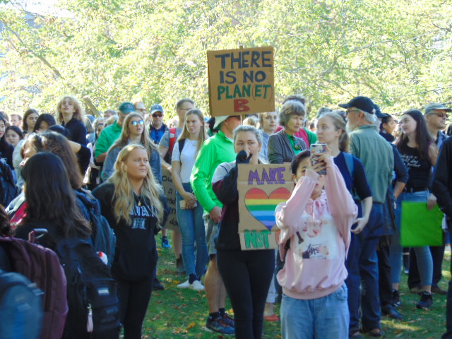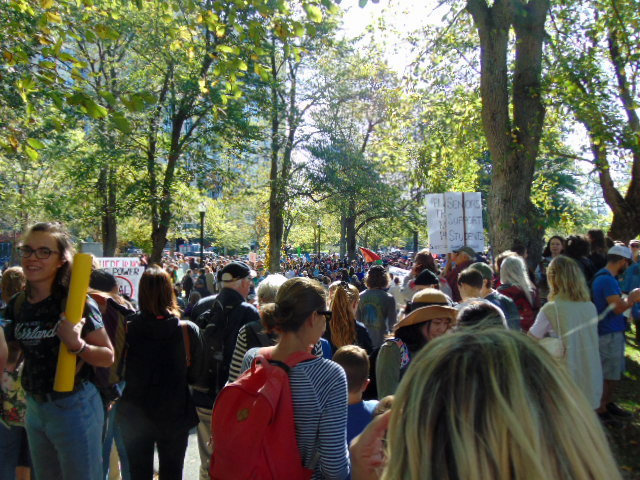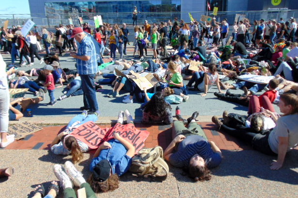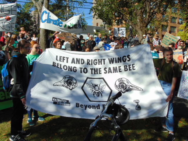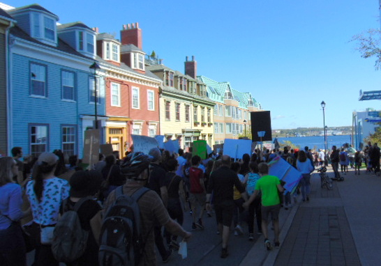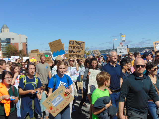Below is a photo galleries I took from the protest in Halifax. Tens of thousands of people gathered in Victoria Park here (as luck would want – the park is located just across the street from the broken huge construction crane during this month hurricane Dorian assault on the city). Later they marched to Nova Scotia Power to perform a ‘die-in’ in front of the center of Nova Scotia’s energy. From there to Government Building, to impress on our politicians to do their job and listen to the science, not to the lobbyists.