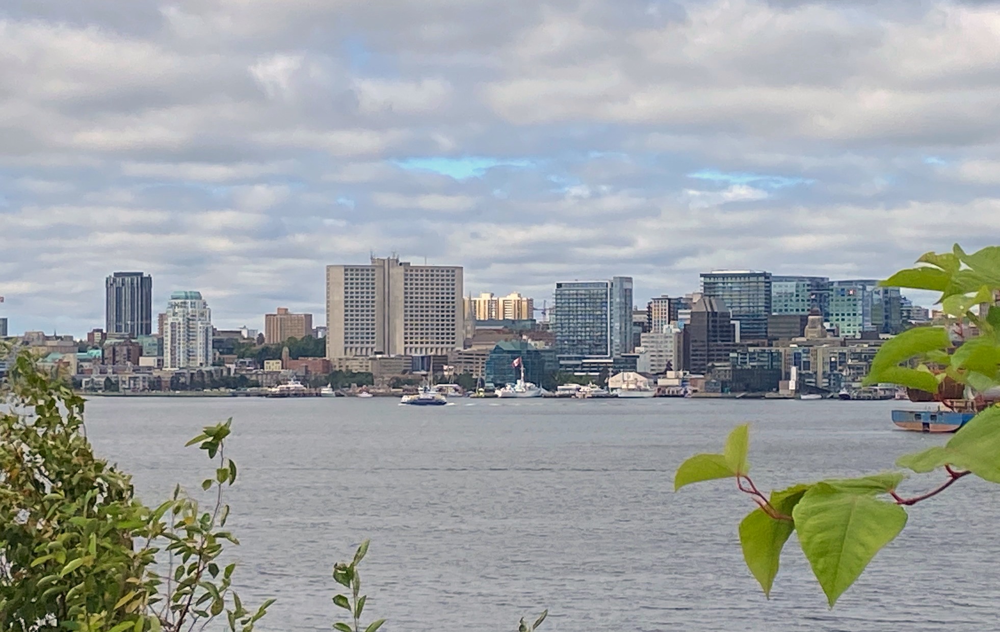 The only way you can really appreciate the view of the entire downtown of Halifax – is to drive across the bridge. You can go on My Rocks to North Dartmouth. The view is very nice but you can see it only at an angle. If you want to snap a few pictures en face – the only and truly wonderful is to take the Trans Canada Trail from the Cove. The walk is splendid. There are benches to take a rest and … enjoy! Go ahead, take a few snaps. I stopped there this morning, on the way back from the hospital.