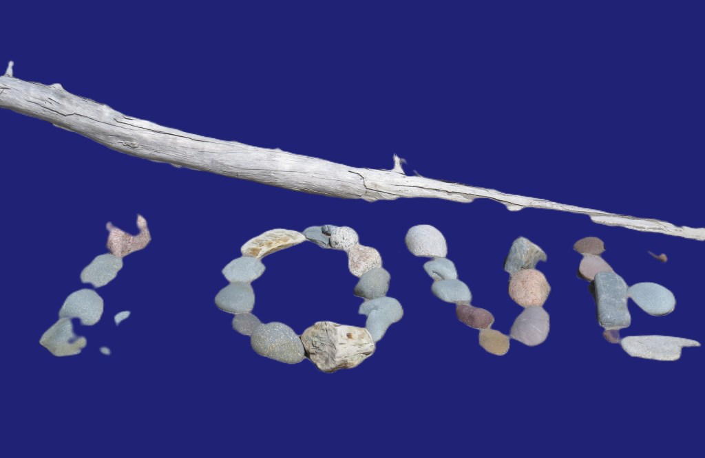 It was fitting than that I had to find two separate places, when my Lover died, for their resting spot. One for his temporal remains in a traditional cemetery with the remains of his parents and siblings, where I go and do the typical shedding of tears, the cleaning around from debris, replacing dead flowers with fresh ones, lighting the candle, taking to his memory about the mundane things at home. To grieve. To be overcome with sadness and loss. It is a sad place; it is sad naturally. How could it be different? But our love did not die. And love have to be celebrated, rejoice. For our love I have a different place. I have built it over the past two years on a secluded, long arm of white sand and carpets of rocks and shells. Far away from busy beaches and popular spots. There is hardly – except few locals – ever anyone on the narrow beach that leads to my special place. To get there you have to cross a narrow channel of fast moving water. Few people ever wanders there, never in groups or noisy beachgoers. There is a spot, nestled in the rams of trunk of white tree brought there by ocean’s waves where I built our Fort of Love. I brought small rocks and huge boulders gathered on the shores for her name: Love and built a small but solid wall protecting it from the storms. It survived already two seasons of these storms. No one ever did any damage to it or treated it with disrespect (it is there in the open, not concealed or hidden). But why would anyone? Deep down everyone – even the sceptics – respects love, desires love, yearns for her.