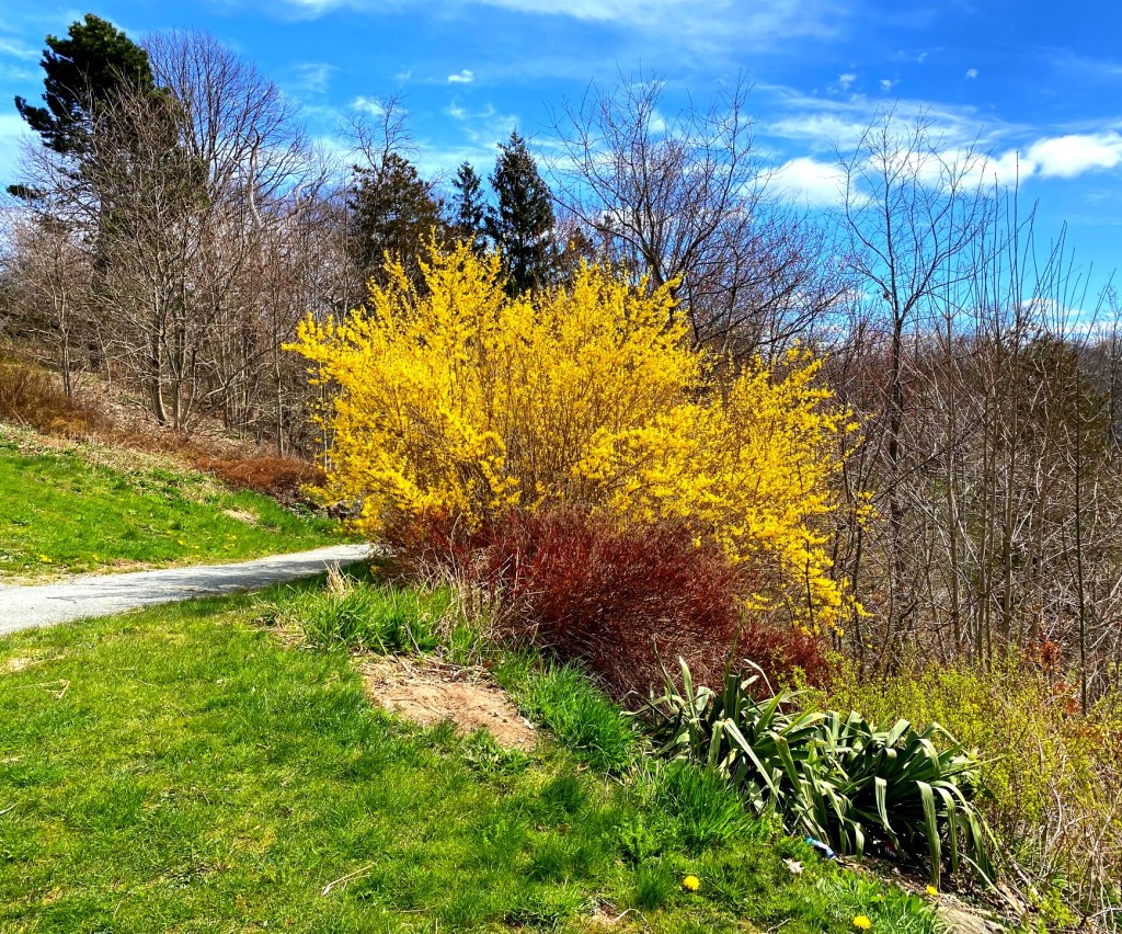 I notice the tiny flowers under my feet and the fresh leaves on tree branches. I hear the birds singing their love songs and the buzz of bees in flowering bushes. And Your whisper to my ear: go, enjoy it. I want you to enjoy it. You must for us and for me. I can’t have peace without knowing it.