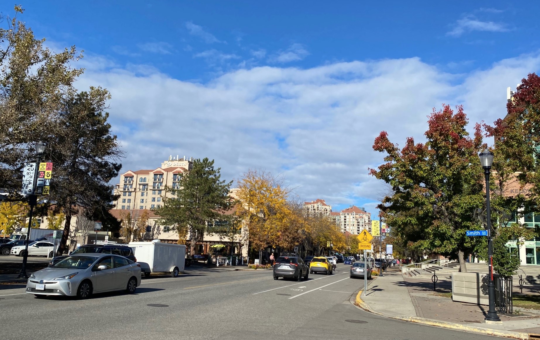 W zasadzie nie cała Kelowna, która (jak wiele kanadyjskich i amerykańskich miast) jest bardzo rozciągnięta olbrzymimi przedmieściami ciągnącymi się przez wiele kilometrów ale jej historyczne centrum – Downtown.