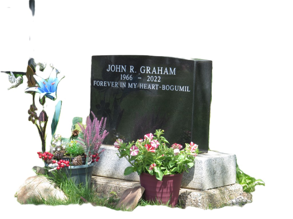 One year. It is hard as hell. Came to Pictou to spent time on the cemetery where we put your ashes. It’s windy, very cold. Desolate place. There was no one else there, on the cemetery. I know – it is only a stone with your name on it. Yours, your parents, and your baby brother you never had a chance to know. And now, there is also your oldest brother Fraser, who was laid there just few months ago.